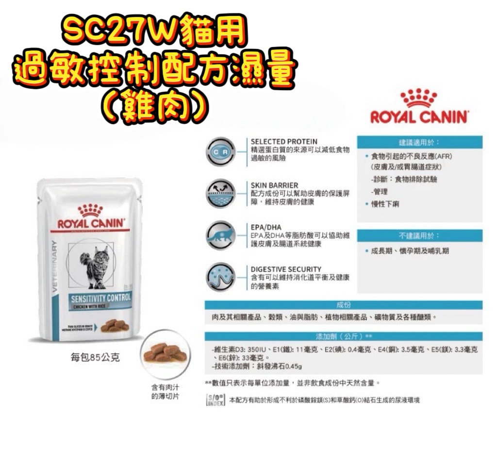【飼料】法國皇家_貓SC27W_低過敏控制配方濕糧 85g
